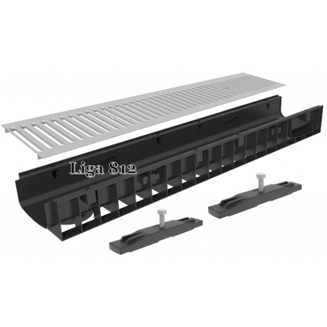 Вы можете купить лоток водоотводный DN150 H100 пластиковый с решеткой щелевой стальной оцинкованной, кл. A15 (комплект 2 крепежа) для организации поверхностного дренажа в местах с небольшой площадью водосбора, с ограничением по глубине заложения ливневки. К этой системе, дополнительно, предлагаются торцевые заглушки и пескоуловитель, который устанавливается в точке сброса и подключается к трубам канализации. Решетка из оцинкованной стали имеет два посадочных места под фиксаторы для надежного крепления решетки в корпусе канала. Продолжительные линии водоотвода рекомендуется строить методом каскада, используя последовательность типоразмеров в серии.