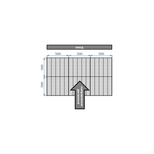Модуль стальной решетки 500х500 может участвовать в построении нестандартных размеров покрытия территории. Рассмотрим некоторые версии раскладки.
