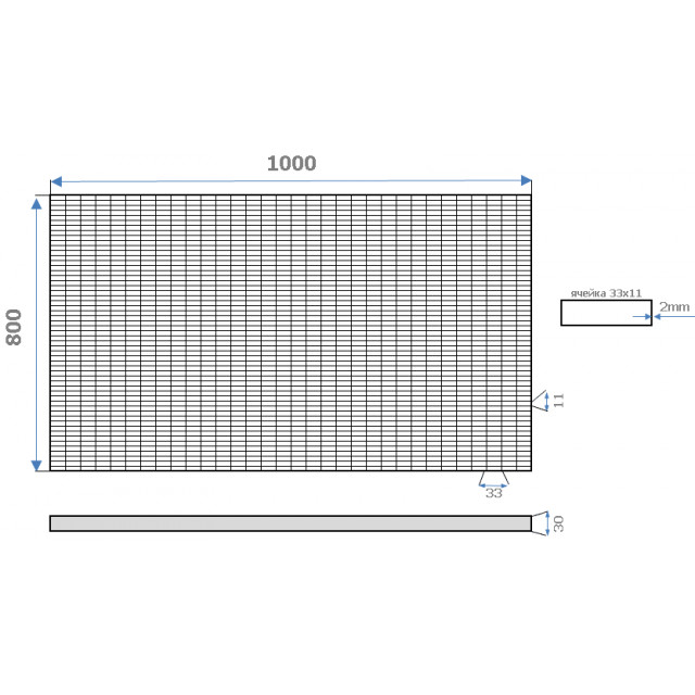 Наша компания производит и предлагает купить настил, тип - грязезащитная придверная стальная оцинкованная решетка 800х1000х30, ячейка 33х11, для организации трехуровневой защиты помещения от уличной грязи, для безопасного движения пешеходов через приямки и канавы. Цена указана с учетом всех налоговых ставок, а итоговая стоимость товара определяется расходами, связанными с удаленностью региона поставки - доставкой.